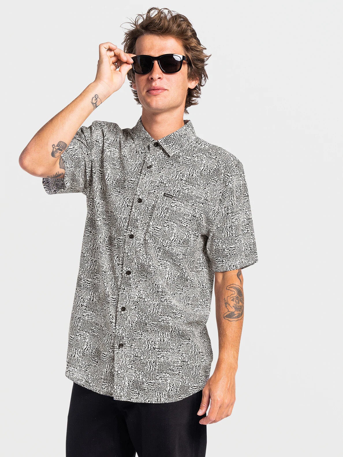 No tricks up our sleeves with this one. Just an insanely comfortable shirt with a visual melange print that can be dressed up or down. Features : ● Men's short sleeves shirt ● Classic fit ● Woven label ● Stone embroidery ● Logo buttons ● All over print